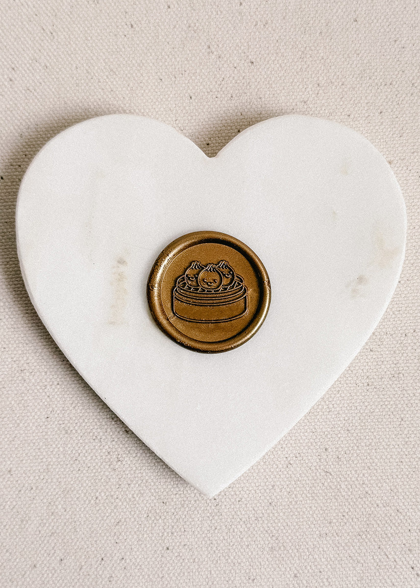 Our Bao wax stamp features a trio of adorable, smiling bao buns nestled within a traditional steamer basket. It adds a playful and sweet touch to love notes or food-themed greetings that are guaranteed to make your recipient smile.
