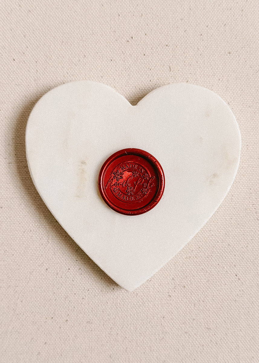 Our North Pole wax stamp features "North Pole" in cursive text surrounded by snowflakes and encircled by the words "Made in". Add a special touch to your cards and invitations this holiday season.