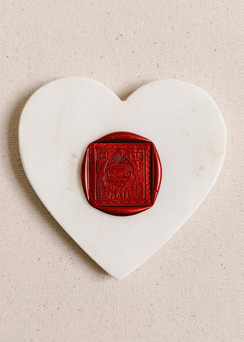 Our Santa Postage wax stamp features a friendly Santa Claus wearing a cozy, patterned hat set against a festive background and framed by a decorative postage stamp border. Add a special touch to your cards and invitations this holiday season.