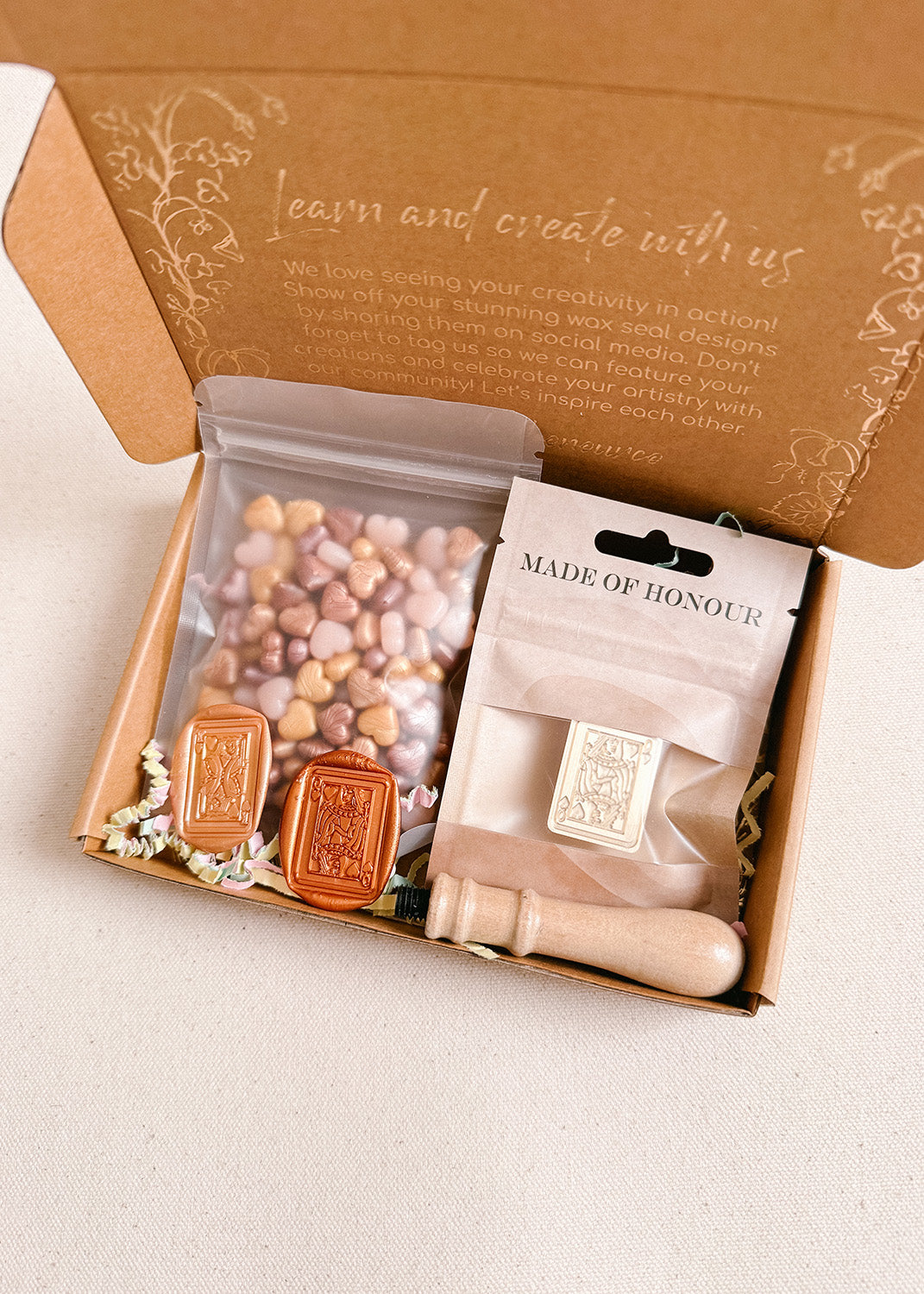 The January box comes with our exclusive Rose Garden wax stamp as well as our mixed Love wax beads for Valentine's Day!