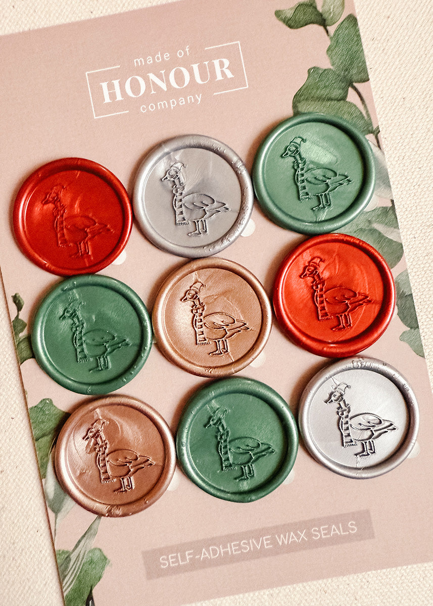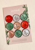 A set of 9 self-adhesive wax seals for invitations, Christmas gifts or holiday snail mail.